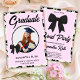 Celebrate your graduate in timeless style with this elegant Wildflower Black Gingham Bow Photo Graduation Invitation. Featuring a chic black gingham bow paired with delicate wildflower accents, this design blends classic charm with a soft, feminine touch. Add your favourite graduation photo to create a personalised keepsake that perfectly captures this special milestone. Ideal for high school or college celebrations, this invitation sets the tone for a stylish and memorable graduation party.