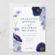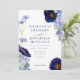 Beautiful rustic boho hand painted watercolor summer wildflowers in navy blue, cornflower blue, purple, green and yellow hues wedding invitation with online rsvp wedding website and QR code on the back. Flowers including cosmos, cornflowers, poppies and forget me nots with foliage. Easy to use template with modern elegant typography script. Perfect for a unique floral botanical navy blue themed summer or spring wedding. Unique original artwork by artist Catherine Sweetman