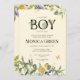 Welcome the arrival of a new little one with this beautiful boy baby shower invitation! The design features delicate wildflowers and graceful butterflies in a pastel colour palette, creating a bohemian vibe that is perfect for any nature-loving mum-to-be. The soft, muted tones of the invitation give it a gentle and inviting feel, making it the perfect choice for a warm and welcoming baby shower celebration. Whether you're planning a small, intimate gathering or a larger event with all of the trimmings, this invitation is sure to set the tone for a memorable and joyous occasion. So, why wait? Get your hands on this boho-themed invitation now and start celebrating the arrival of your new bundle of joy in style!