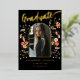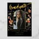 Celebrate your daughter’s college graduation with this stunning Modern Gold Foil Script Calligraphy Photo Announcement Card. Designed by artist Catherine Sweetman, this card features elegant gold foil calligraphy and a whimsical watercolor wildflower arch, capturing the spirit of the occasion. The front showcases your daughter’s name and graduation details in stylish gold. Foil script on a black background, while the back provides space for additional information in modern stylish typography. With an easy-to-use photo template, you can personalise the card with a cherished photo of your graduate. This unique, original design is the perfect way to commemorate her achievement and share the joy with friends and family.