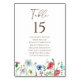 Watercolor Wildflower Boho Garden Floral Table Number Seating Chart. Matching items available.