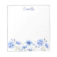 Pretty wildflower notepad to personalise with your name. This watercolor floral design has a border of blue wild flowers with hand lettered typography.