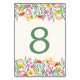 Colorful wildflowers and soft greenery create a natural floral border that feels both vibrant and refined. The bold table number stands out clearly, making it easy for guests to find their seats while beautifully complementing your wedding décor.