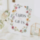 Cards and Gifts table top pedestal bridal shower sign. This design features a delicate wreath bouquet of hand painted wildflowers and greenery along with a lovely combination of modern and rustic fonts. See the entire collection for more matching items!