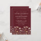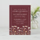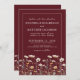 The background is a deep burgundy on both sides, with the text in elegant dark gray fonts. Handwritten script blends with modern serif typography for a clean, contemporary feel. The muted floral palette complements a variety of wedding styles, from rustic outdoor gatherings to chic metropolitan events.