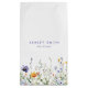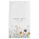 This design features a watercolor border of wildflowers in bold shades of purple, green, orange, and gold. Personalise with your name and business information.