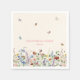 This is an elegant and bohemian bridal shower napkin. The design features a colourful and summery field of delicate wildflower florals in pretty shades of blue, terracotta, pink, rust, purple and yellow. The butterflies and bees add the finishing whimsical and pretty touch.