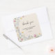This beautiful wildflower themed baby shower square 3" sticker will set the perfect tone for your couples baby shower. Designed with neutral black classic lettering surrounded by beautifully detailed bouquet of boho wildflowers in pink, blue, yellow and green tones. Let this beautifully crafted design bring your baby shower vision to life—customize it with your information.