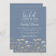 All text appears in clean white fonts, blending handwritten script with modern serif typography for a fresh, contemporary look that pops beautifully against the blue background. The muted floral palette pairs effortlessly with a wide range of bridal shower themes, from rustic outdoor gatherings to chic bohemian celebrations.