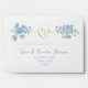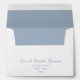 Modern, boho, elegant, wildflower dusty blue wedding invitation 5x7 envelope with return address, monogram and gold rope heart.