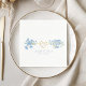 Elegant, modern, boho, floral personalised dusty blue wedding napkins with gold rope heart monogram, periwinkle wildflowers and simple handwritten calligraphy script.