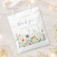 This design features a colourful border of watercolor wildflowers in shades of purple, gold, green, and blue.