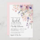 The design features a delicate arrangement of watercolor wildflowers and greenery in the top right corner, with a soft palette of pastel blush pinks, dusty rose, lilac, lavender, violet, and fresh green leaves. This creates a whimsical and sophisticated aesthetic, perfect for celebrating love in full bloom.