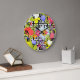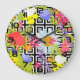 Wildflower Floral Garden on Geometric Pattern Large Clock