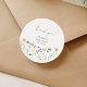 Add a charming finishing touch to your baby shower favours, envelopes, or decorations with this elegant wildflower-themed round sticker! Featuring delicate watercolor florals in soft green, yellow, and blue hues, this sticker is perfect for boho, rustic, or garden-inspired baby showers. Whether sealing thank-you cards, decorating favour bags, or personalising party decor, this classic round sticker is both stylish and versatile.