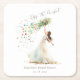 Protect your tabletops in style with these charming bridal shower coasters, featuring a watercolor bride mid-bouquet toss surrounded by fluttering wildflowers. A lovely blend of elegance and whimsy, these personalised coasters add a cohesive, custom touch to your bridal celebration—and double as sweet take-home mementos for guests.