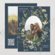 Wildflower Frame 2 Photo Wedding QR Code Navy Blue Save The Date