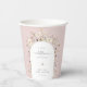 Wildflower Baby Shower paper cups. Colourful wildflowers arch frame, butterfly accent, chic dark grey typography and coordinating pink colour background.