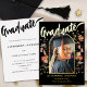 Celebrate your daughter’s college graduation with this stunning Modern Gold Foil Script Calligraphy graduate Photo arch graduation party invitation. Designed by artist Catherine Sweetman, this card features elegant gold foil calligraphy and a whimsical watercolor wildflower arch, capturing the spirit of the occasion. The front showcases your daughter’s name and graduation details in stylish gold. Foil script on a black background, while the back provides space for additional information in modern stylish typography. With an easy-to-use photo template, you can personalise the card with a cherished photo of your graduate. This unique, original design is the perfect way to commemorate her achievement and share the joy with friends and family.