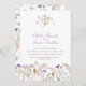 Pretty botanical wildflowers and soft grasses watercolor wedding invitation on white with pretty entwined harebells and heather flowers in soft muted blue and purple monogram and a selection of soft muted brown pink grasses and wildflower art along the bottom all hand painted watercolors. Delicate fall to winter feel botanical art invite with script text on white and a muted pink, brown, blue, mauve, purple colour palette. Personalise with your own initials, names, wedding date, time, venue and further details. Other matching items are available. Original hand watercolor wildflower paintings and design by Sarah Trett for www.mylittleedenweddings.com