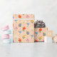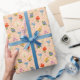 A charming wildflower pattern featuring delicate blooms arranged in a playful harlequin lattice on a warm blush background.