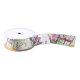 Wildflowers and iris blooms in colours of pink, yellow, lavender, purple and green on this 1.5 inch gift, favour or wrapping decorative ribbon, perfect for bridal showers, baby showers or just for wrapping gifts and making wreath bows. There's other matching products in this pattern as well to help you and your guests have a "blooming good" day!