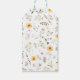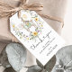 This adorable favour tag features a cute rabbit riding a baby sheep surrounded by yellow, white and lilac wildflowers