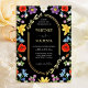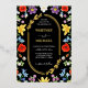Bright, colourful and joyful wedding foil invitation that will impress your guests. Perfect for spring and summer weddings. The elegant design features beautiful hand-drawn watercolor wildflowers including clover, poppy, forget me not, crocus, daffodil, bluebell and pasque flower with green botanical elements and modern calligraphy font on a black background. The real gold foil frame and couple's names make the front of the invitation elegant and luxurious. At the back of the invite, a colourful floral pattern matches the front design. The monogram showcases the couple's initials. Personalise the text by adding your name, date, initials, and event details. For more matching wedding items, please browse my Colourful Spring Wildflower Meadow Collection.