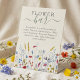 This sweet and simple flower bar sign is perfect for any nature themed party or shower. The design features the title "flower bar" in a charming script and serif font and the bottom of the signage is adorned with a beautiful field of hand painted watercolor wildflowers, adding a touch of color and whimsy. This sign is fully customizable with your own details, making it a truly unique way to thank your guests for attending the special day and is sure to impress your guests and set the tone for a beautiful and memorable celebration.