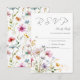 Encourage your guests to reply in style with our Whimsical Wildflower Meadow RSVP Card. The front features a vibrant, hand-painted watercolor floral arrangement that perfectly frames your elegant text. The true showstopper is the reverse side, showcasing a stunning, seamless botanical pattern in soft pinks, blues, and yellows.