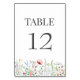 Guide guests effortlessly with this beautifully designed wildflower meadow wedding table number. The elegant watercolor florals at the base bring a soft botanical charm to your reception tables, ideal for rustic, boho, garden, or countryside weddings. Printed on quality cardstock, it pairs perfectly with coordinating wildflower invitations, menus, and signage. Customise table numbers easily for a consistent, stylish decor flow throughout your event.