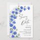 Celebrate your special day in style with this unique and exquisite Wildflower Modern Rustic Elegant Wedding Save the Date card. The watercolor floral design adds a touch of sophistication to your announcement, making it perfect for couples seeking a stylish and on-trend celebration. With a nod to boho and garden vibes, this stunning card evokes the beauty of wildflowers, creating a whimsical atmosphere for your upcoming wedding. Set the tone for your event with this invitation that seamlessly blends the timeless elegance of blue and white with a touch of contemporary flair.