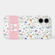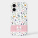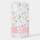 Add a soft, colourful touch to your phone with this elegant case featuring a delicate wildflower pattern in pastel shades of pink, purple, blue, yellow, and green on a clean white background. A pink bar runs across the bottom portion of the design, showcasing a white and grey monogram for a graceful, personalised accent.