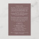 This beautifully minimal wedding information card is designed to give your guests directions and a schedule of the day in a clear, uncluttered format. With a delicate wildflower monogram, it’s perfect for fall and winter celebrations.Easy to personalise with your own details. Matching items are also available to complete your wedding suite.© Original hand painted watercolor art and design by Sarah Trett exclusively for www.mylittleedenweddings.com
