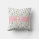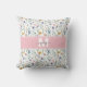 Personalised Elegant Wildflower Monogram Throw Pillow. Add a soft, stylish touch to your space with this elegant throw pillow featuring a delicate wildflower pattern in pastel shades of pink, purple, blue, yellow, and green on a clean white background. The design is printed on both the front and back for a polished, cohesive look. A pink bar runs across the design with a white and grey monogram at the centre, creating a graceful and personalised accent.