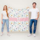Personalised Elegant Wildflower Monogram Fleece Blanket. Add a soft, cosy touch to your home with this elegant fleece blanket featuring a delicate wildflower pattern in pastel shades of pink, purple, blue, yellow, and green on a clean white background. The design is printed on one side and includes a pink bar across the centre with a white and grey monogram for a graceful, personalised accent.