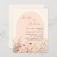 An elegant Baby in Bloom Baby Shower invitation. A cream, beige coloured background and a peach coloured arch. Decorated with watercolored wildflowers in beige, pink.