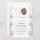 Celebrate in style with this beautifully designed 90th birthday invitation featuring delicate watercolour wildflowers. This elegant feminine design frames your personalised photo, adding a special touch to your milestone celebration. Perfect for garden parties, brunches, or sophisticated soirées, this customisable invite sets the tone for a memorable event. Easily edit the text to include your name, party details, and more—make it uniquely yours!