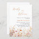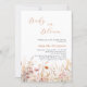 An elegant Baby in Bloom Baby Shower invitation. A white background Decorated with watercolored wildflowers in beige, pink.