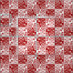This unique tiled fabric design has a repeating and alternating square block / chequerboard pattern filled with red and white flower silhouettes. The pretty, tiled flowers have thorns and resemble English wild roses, yet the colours and design of the pattern make it look somewhat vintage Victorian / Art Nouveau oriental. This is a very bold floral fabric and will make an original, eye-catching addition to your home decor and craft projects.