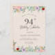 Wildflower Rustic Boho 94th Birthday Simple Beige Invitation