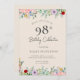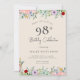 Adult Birthday Invitations | Rustic Beige floral Elegant 98th Invitation