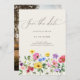 Celebrate your love story with this elegant floral photo save the date card featuring a charming watercolor wild flower design and modern calligraphy script. Perfect for a garden wedding, outdoor ceremony, or rustic boho celebration, this design blends whimsical floral elements with timeless elegance. Ideal for summer or spring weddings, the vibrant botanical artwork and personalised layout make it easy to customise with your event details. Whether you're hosting a romantic outdoor wedding or a vintage-inspired celebration, this invitation sets the perfect tone. Easily edit names, dates, and locations to make it truly yours. Available as both a printed card and printable wedding template.