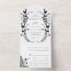 Wildflower Silhouette Wreath Wedding Black & White All In One Invitation
