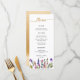 Watercolor Wildflower Simple 3 course wedding menu features faux gold calligraphy heading, watercolor wildflower border and salad, entrée and dessert template. There's also room for bride and groom's names and wedding date. This exact layout is also available without the gold accents.