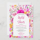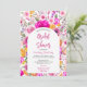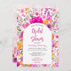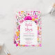 This bridal shower invitation features an arrangement of watercolor flowers in shades of pink and white in rustic garden greenery.