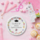 Wildflower Spring Class Graduation Paper Plates, watercolor flowers in shades of pink and purple, yellow in rustic garden greenery.