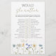 Add laughter and lighthearted fun to your baby shower with this charming Would She Rather? game card, beautifully decorated with watercolor wildflowers in soft green, yellow, and blue. Guests will try to guess the mum-to-be’s preferences—like “coffee or tea?” or “early bird or night owl?”—and see who knows her best!
