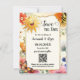 Whimsical Save the Date card featuring your favorite photo on the front. The back shows a fun cheerful design with a laughing sun on watercolor wildflowers with butterflies. A QR code template is easy to customize (or delete in case you don't need it).