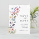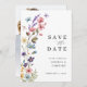 A modern and elegant wedding save the date in spring summer wildflower theme. Featuring colourful watercolor peach, blush pink, lavender, yellow and dusty blue florals and botanical with butterfly and dragonfly. It has a monogram and an editable wedding website and photo at the back. You can delete text if not needed.